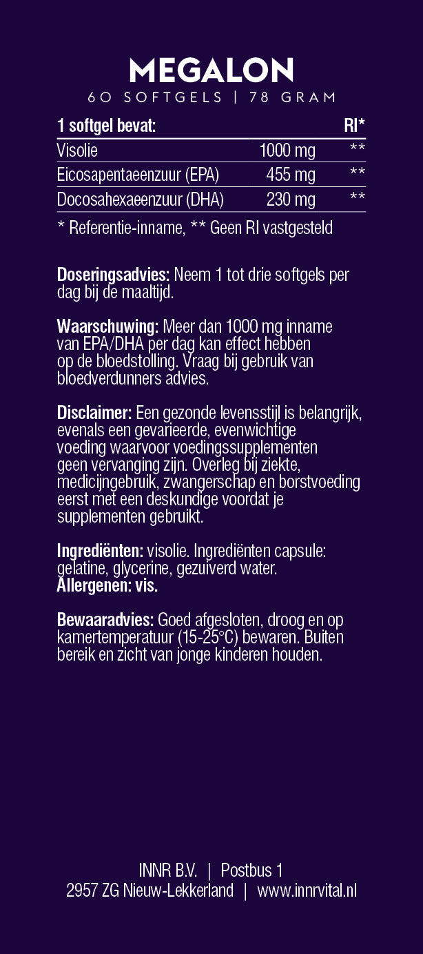 Megalon is een visolie met een extreem hoog gehalte aan de omega-3-vetzuren EPA en DHA. En let op; wij verkopen alleen de 'TG-variant'. Het verschil tussen goedkope en duurdere visolie heeft te maken met het productieproces. Simpel verwoord: TG-visolie is de natuurlijke vorm die je lichaam herkent (in de vorm van triglyceriden). Aan goedkope visolie is geknutseld om die in te dikken, zodat die een hoger gehalte EPA/DHA krijgt, maar je lichaam kan er niks mee en dit eindigt dus in het riool. Dus 'goedkoop' is hier letterlijk 'duurkoop'.